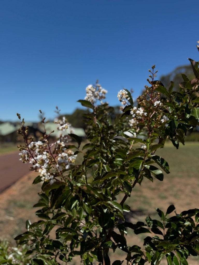 The year has begun with a quiet but beautiful milestone. The Myrtle trees lining our driveway in Pemberton have flowered for the first time.