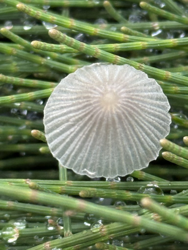 I believe they are pleated inkcaps. They have delicate, finely pleated caps, almost translucent, and seem to appear only after moisture. Small and perfectly formed, they feel more like something sketched than grown.